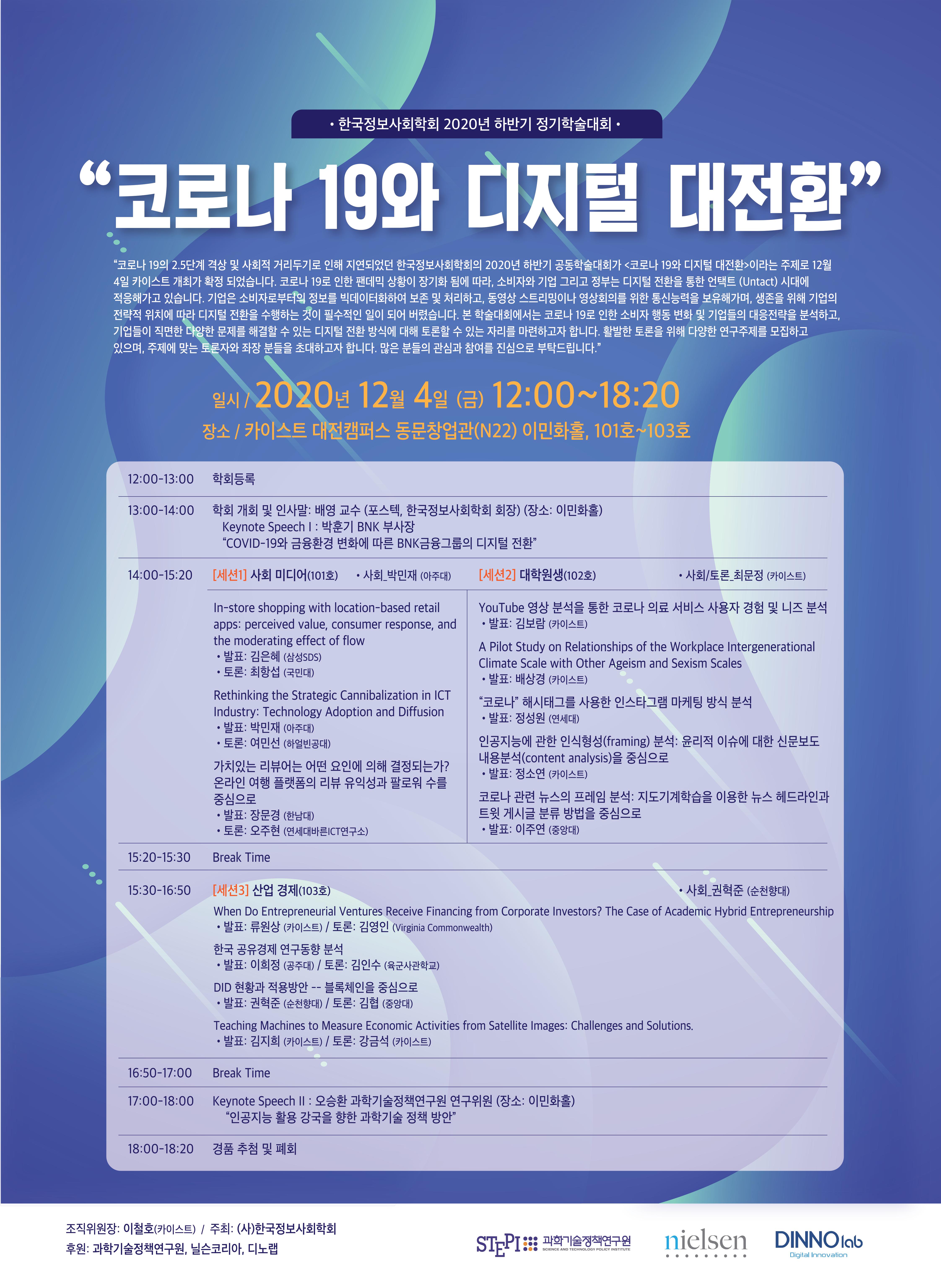 [한국정보사회학회] 2020년 하반기 정기학술대회 안내(12.4(금) 12:00~18:20)