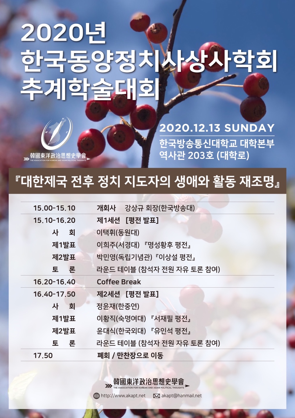 2020년도 한국동양정칫하상사학회 추계학술회의 개최 예정