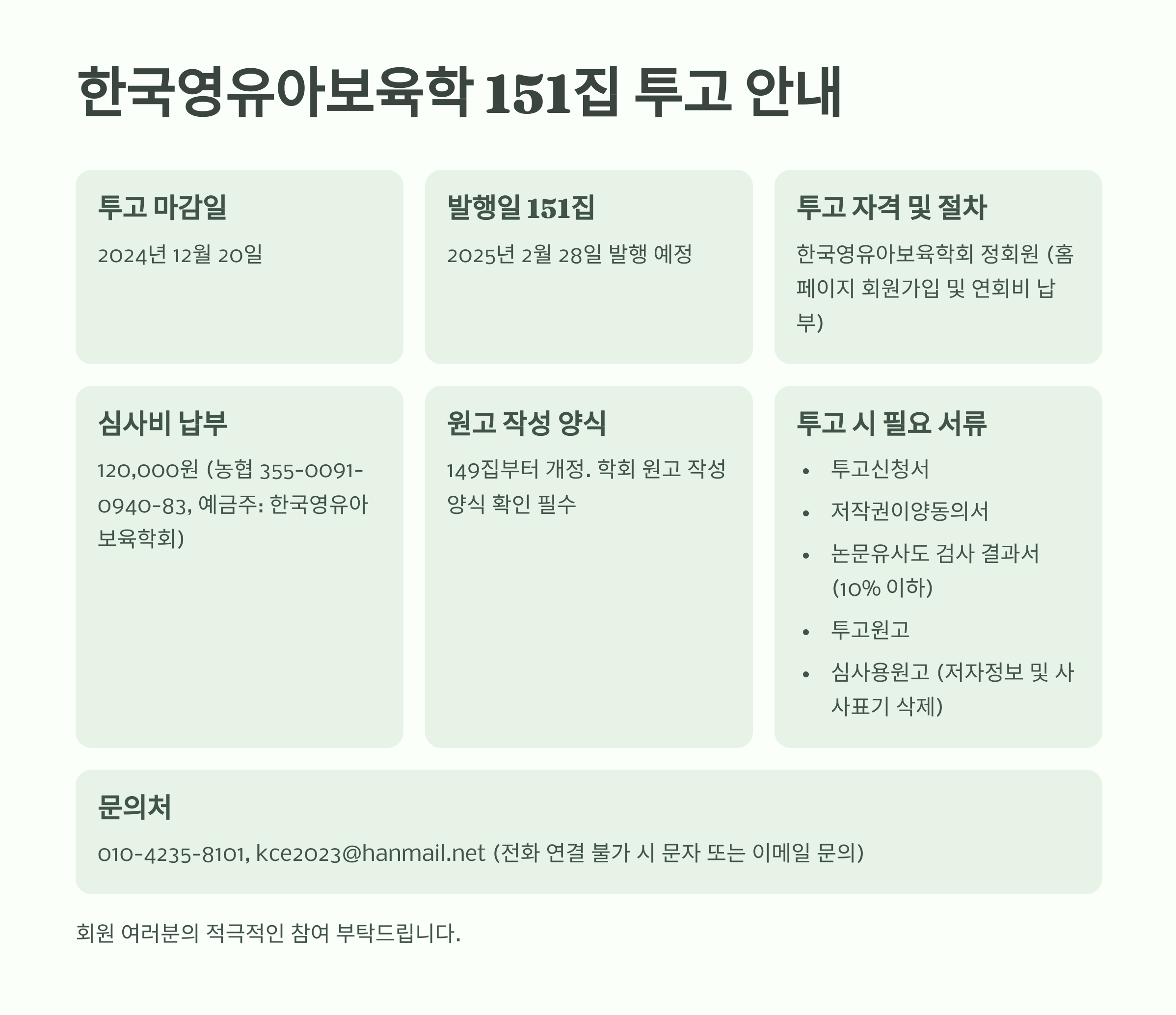 [한국영유아보육학] 151집 투고 안내