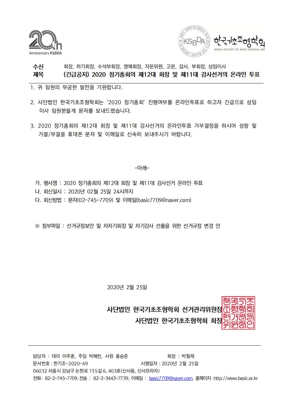 (긴급공지) 2020 정기총회의 제12대 회장 및 제11대 감사선거의 온라인 투표
