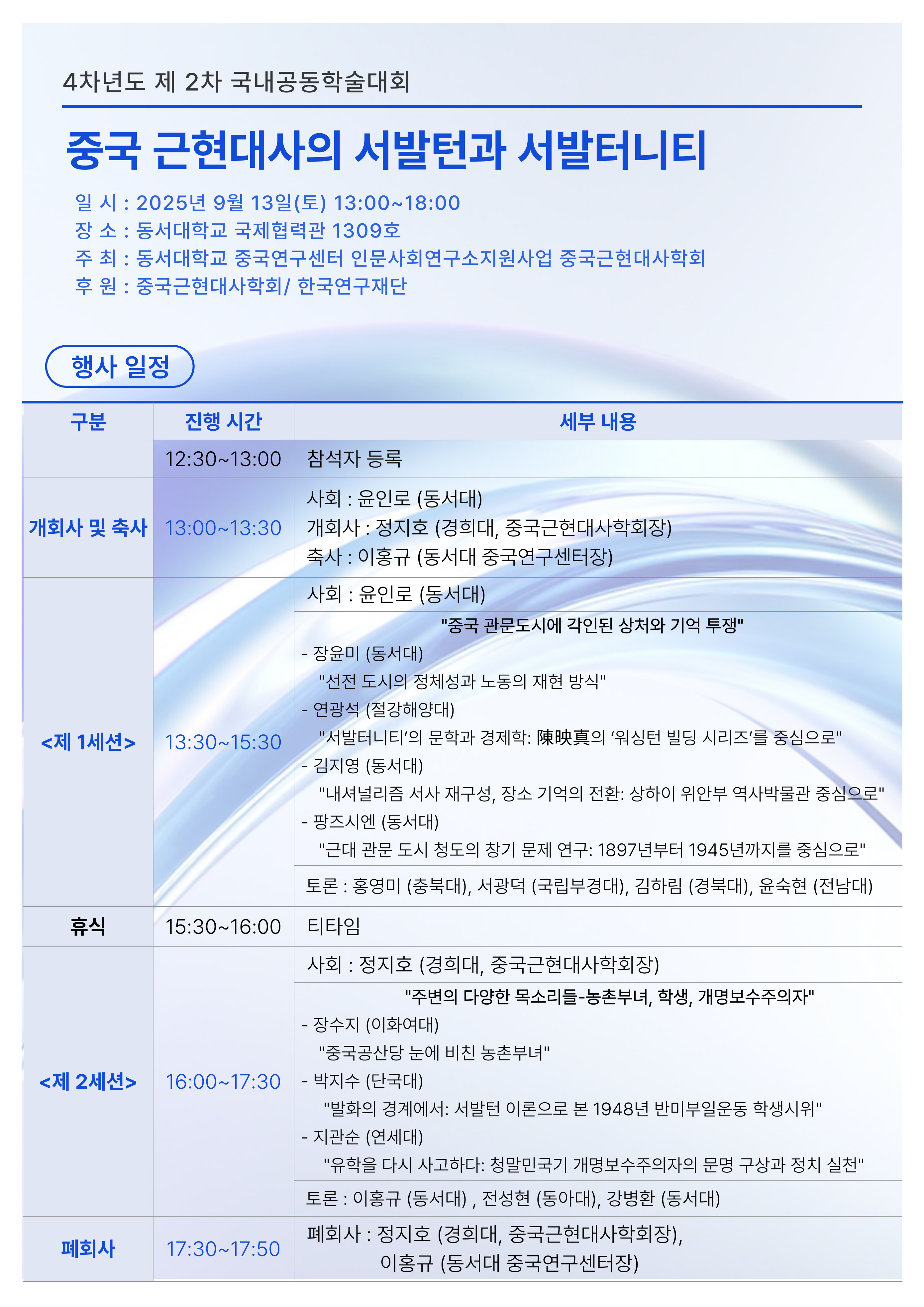 - 주제: 중국 근현대사의 서발턴과 서발터니티