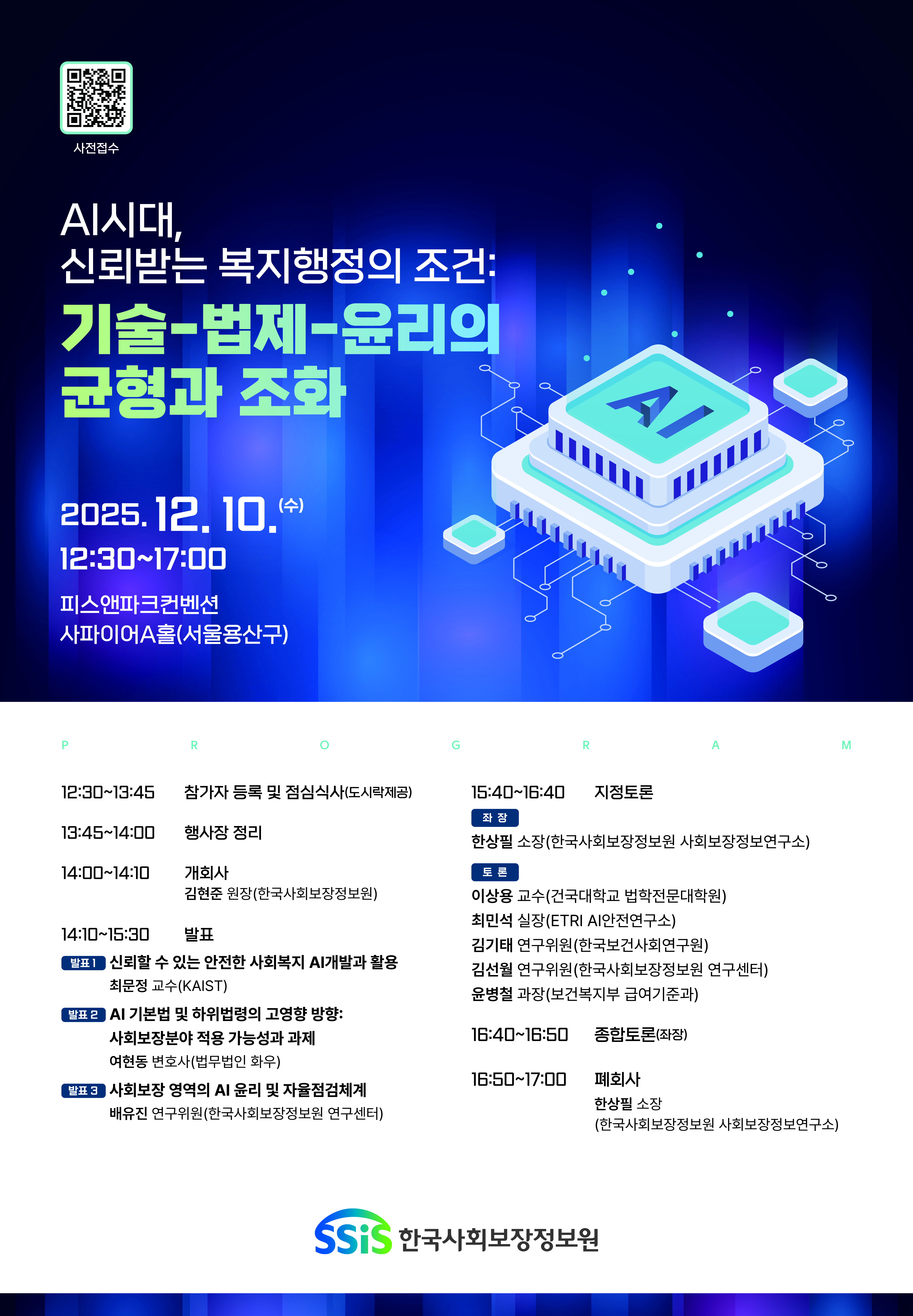 - 주제: "AI시대, 신뢰받는 복지행정의 조건: 기술-법제-윤리의 균형과 조화"