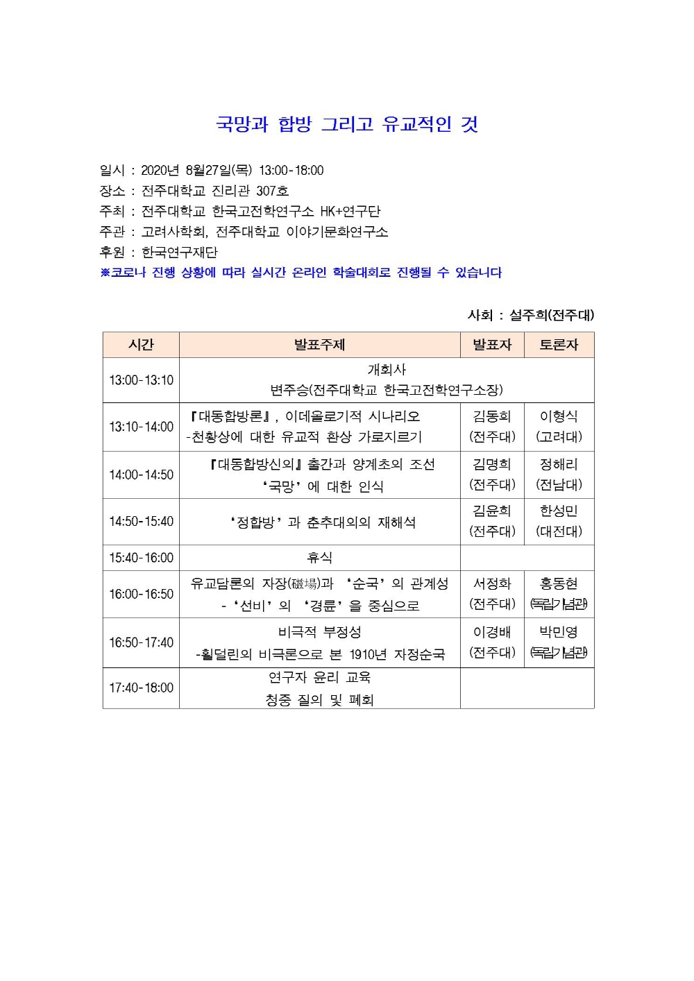 <국망과 합방 그리고 유교적인 것> 학술회의 안내