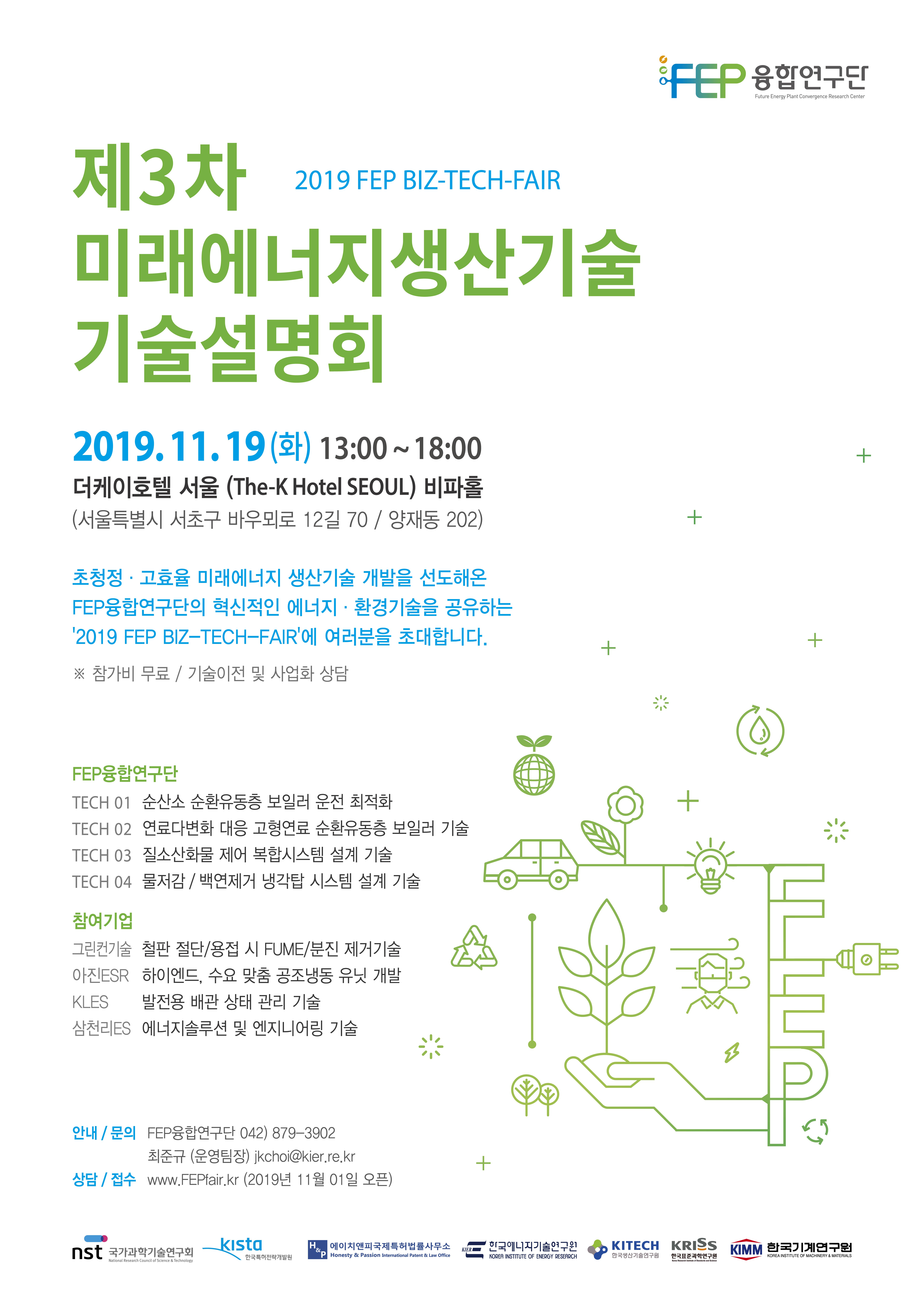 [FEB융합연구단] 제3차 미래에너지생산기술 기술설명회: 11/19(화) 더케이호텔 서울